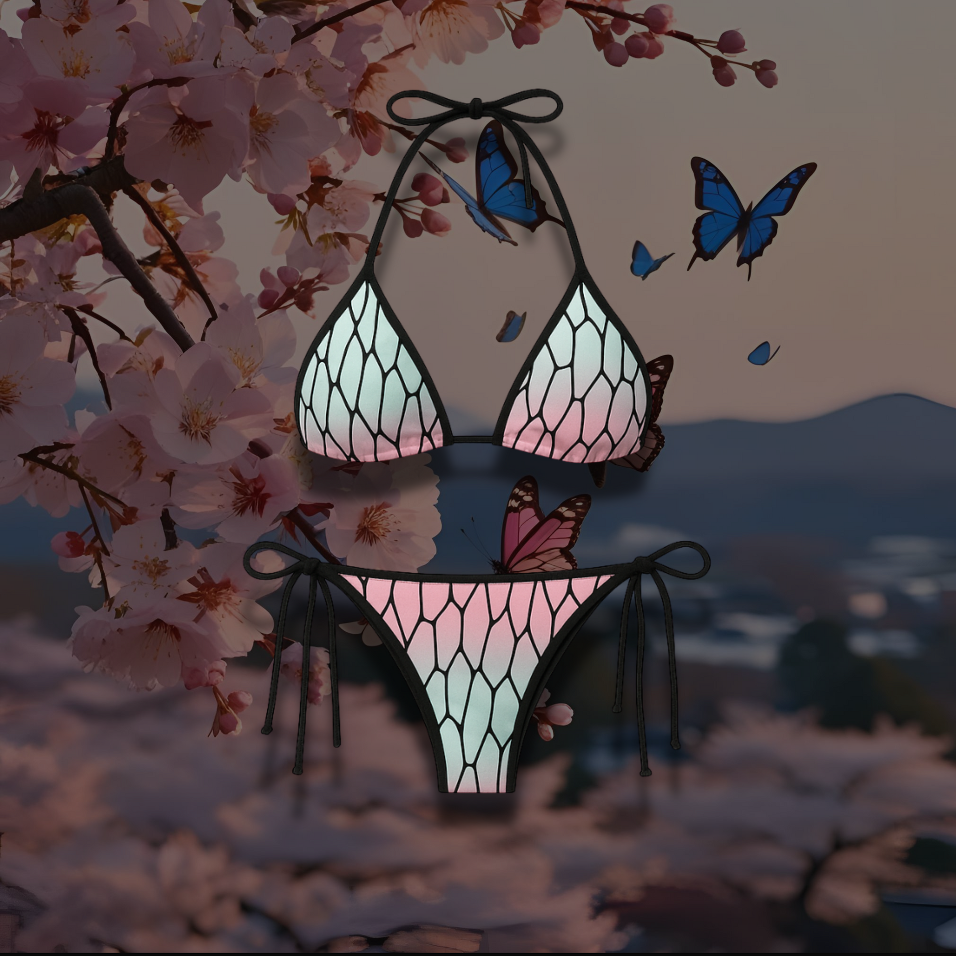 Graceful, soft, and deadly—just like the Insect Hashira. The Butterfly Breeze Bikini channels the ethereal elegance of Shinobu Kocho with a pastel color palette fading between soft pinks, blues, and greens, outlined in a delicate wing-like pattern. Whether you’re chasing butterflies or just catching rays, this suit brings a touch of wisteria garden serenity wherever you go.